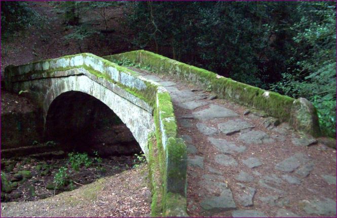 We continue along the trail for the majority of what remains of the walk. The path is wide and formed of crushed stone. We are surrounded by woodland with a sometimes deep ravine to our right.